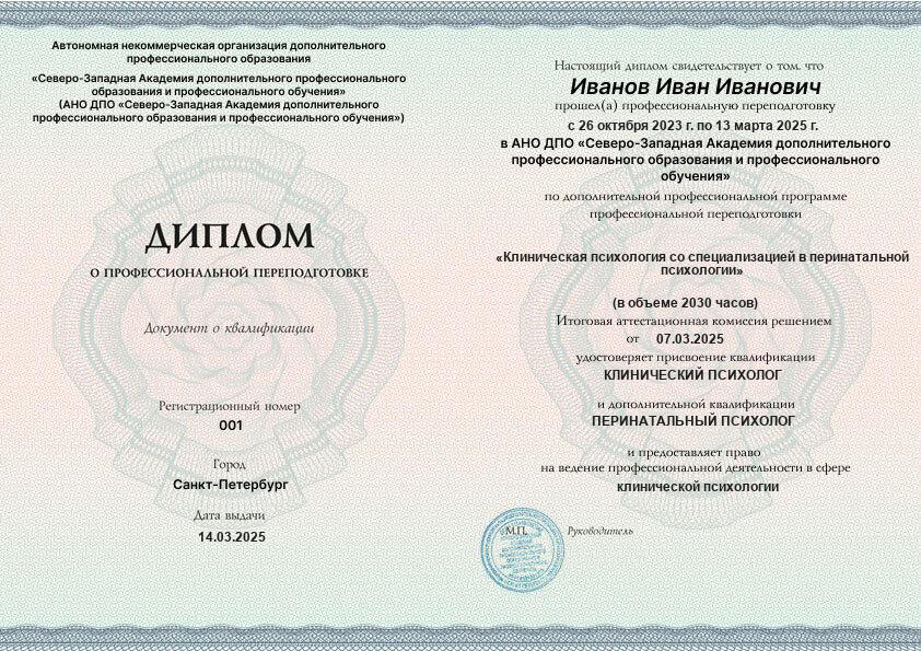 - 2 квалификации: Клинический психолог + Перинатальный психолог