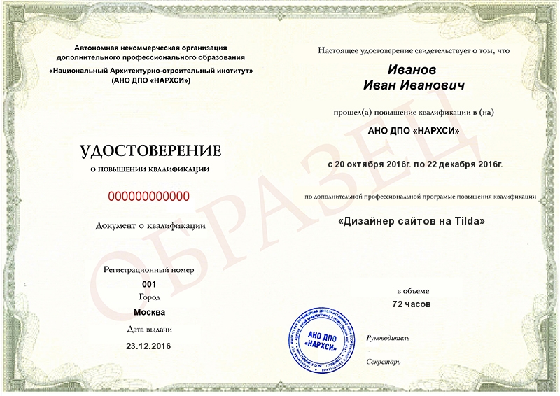 Курс повышения квалификации Создание сайтов на Tilda (72ч)